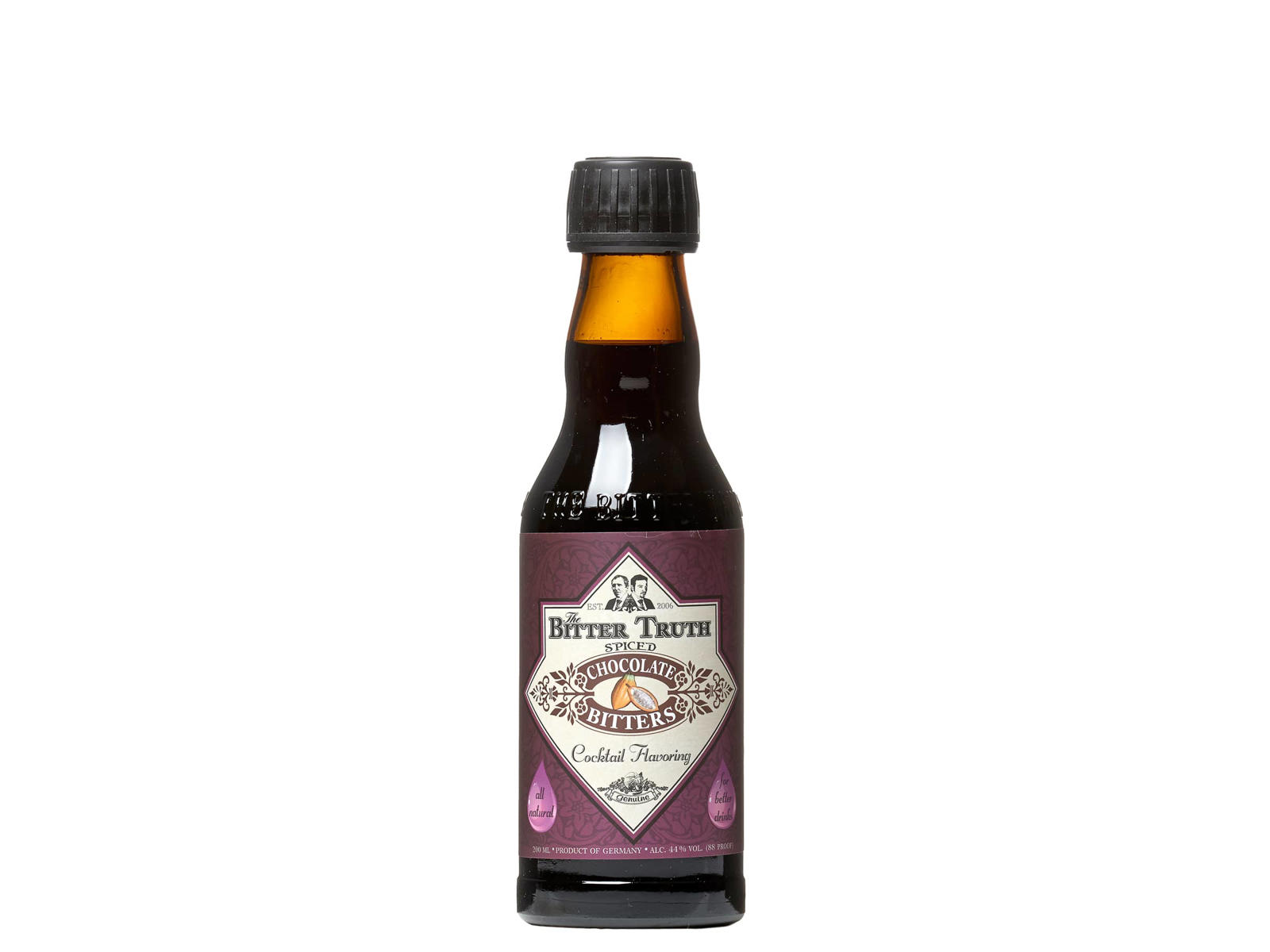 Bitter Truth Chocolate Bitters fungerer exceptionelt godt med søde vermuter og alle slags lagrede spiritus som whiskey, rom, tequila og brandy. Tilføj en dash til en Manhattan eller Negroni for at begynde at udforske dens komplekse smag, eller brug den i en Tequila Old Fashioned for at fremhæve spiritussens vegetale egenskaber.