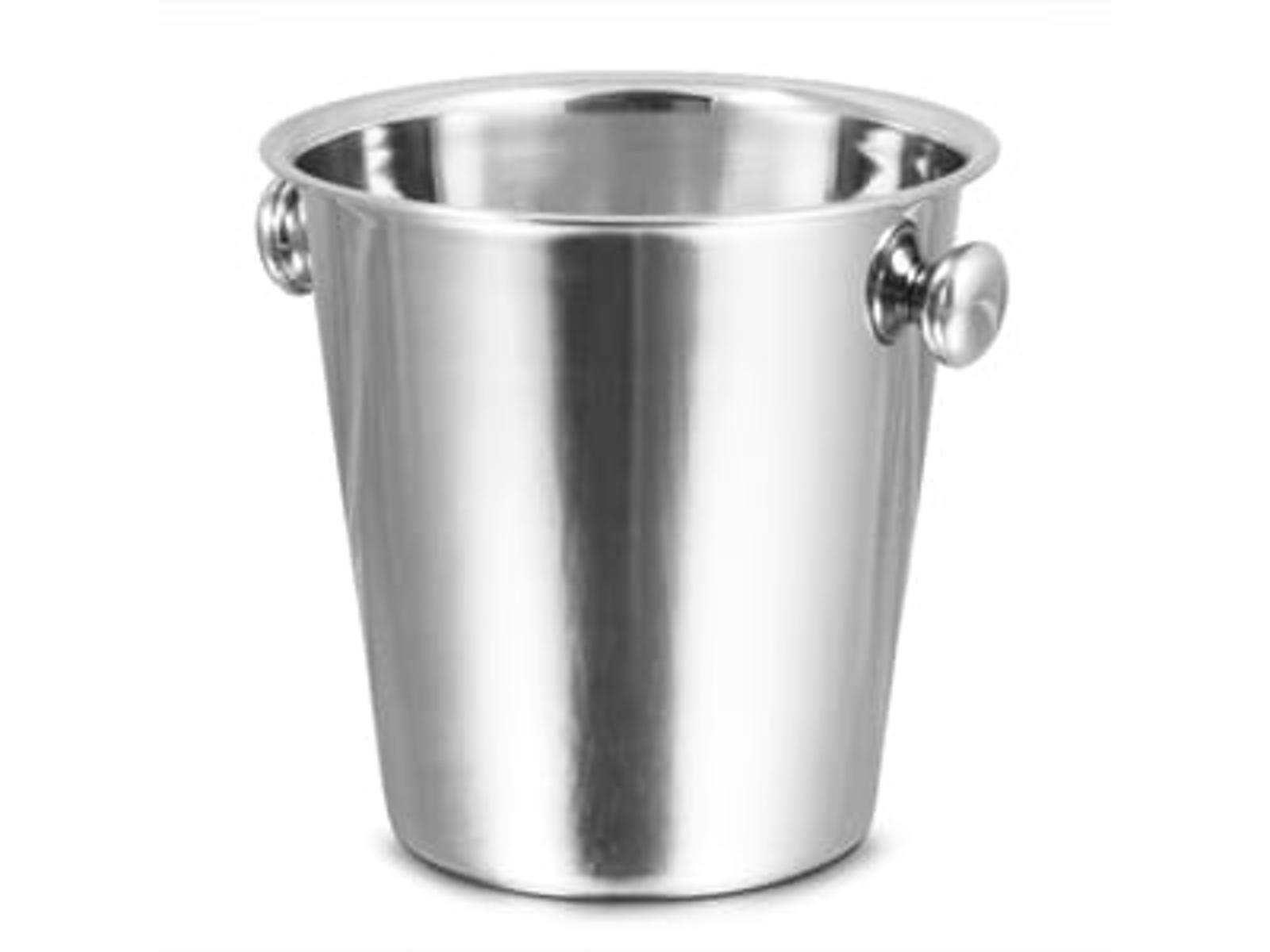 Denne klassiske Champagnekøler/Vinkøler passer til én flaske 70-100 cl samt en god slat is til nedkøling. Her får du masser værdi for pengene og et klassisk design som passer ind de fleste steder. Kan med fordel anvendes sammen med denne stander, så den kan stå ved siden af gæstens bord. Lavet af rustfrit stål.