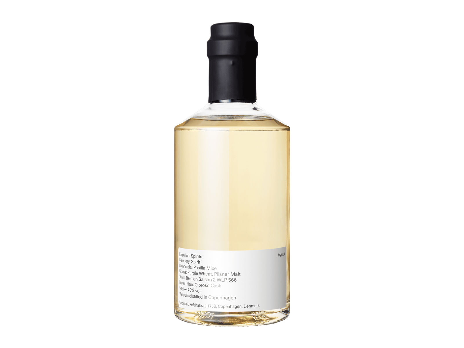 Den sidste spiritus er baseret på pilsnermalt, lilla hvede og belgisk Saison-gær med Pasilla Mixe som den botaniske del. Den samlede spiritus lagres i Oloroso sherryfade i 21 dage.