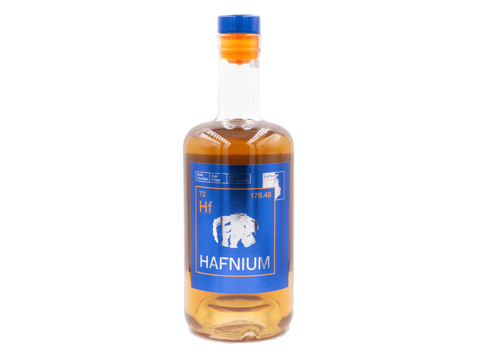 Hafnium er en blød spiritus med en dybde og en kompleksitet af noget der har lagret flere år på eg. Hafinium tilbyder en rig smag af tørrede rosiner og svesker, der er komplimenteret af noter af citrus, ingefær og frugtkage med en lang og varm afslutning. Modnet i 9 dage.