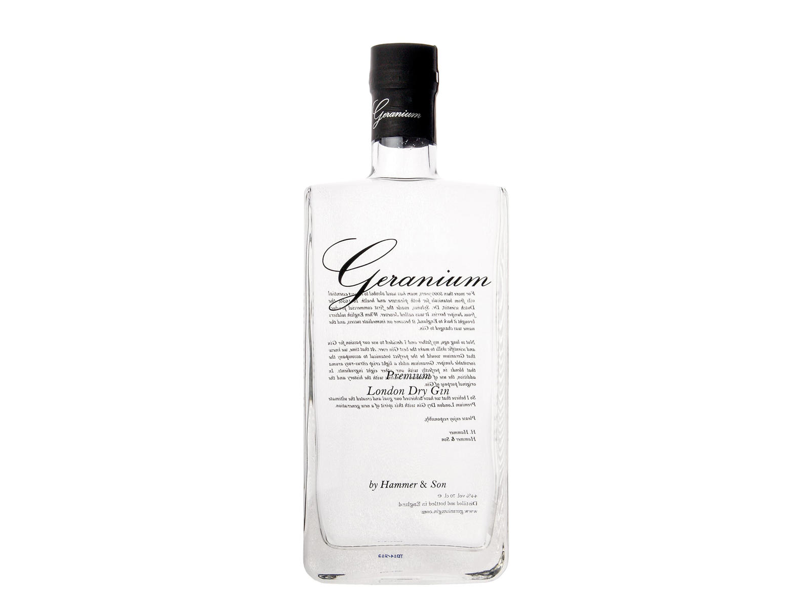 Geranium Gin er resultatet af familiesamarbejdet mellem Henrik og Hudi Hammer. Deres kombinerede viden har skabt, hvad der i dag kategoriseres som én af verdens bedste premium London Dry Gin. Ginnen blev lanceret i 2009 med målet om at skabe en verdensklasse gin baseret på danske ingredienser. Hammer & Son producerer selv deres ”botanicals”, selv ginnens vigtige ingrediens, storkenæb. Storkenæb har desuden tidligere været anvendt som naturlægemiddel og kosttilskud, ofte i kombination med andre planter som fx enebær og citron. Ud over storkenæb indeholder Geranium Gin følgende ingredienser: Enebær, korianderfrø, citronskal, appelsinskal, lakridsrod, cassiabark, angelikarod, orrisrod og den hemmelige ingrediens, som Henrik Hammer ikke røber til nogen som helst.