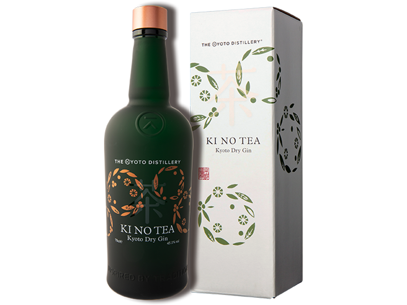 KI NO TEA Kyoto Dry Gin er lavet på en base en den originale gin fra The Kyoto Distillery og tilsat te. Teen er en grøn te, der er lavet på en blanding af Tencha og Gyokuro. Begge kommer fra det berømte Uji-område syd for Kyoto by. Ginnen er skabt i samarbejde med te-producenten og blanderen Hori-Shichimeien.