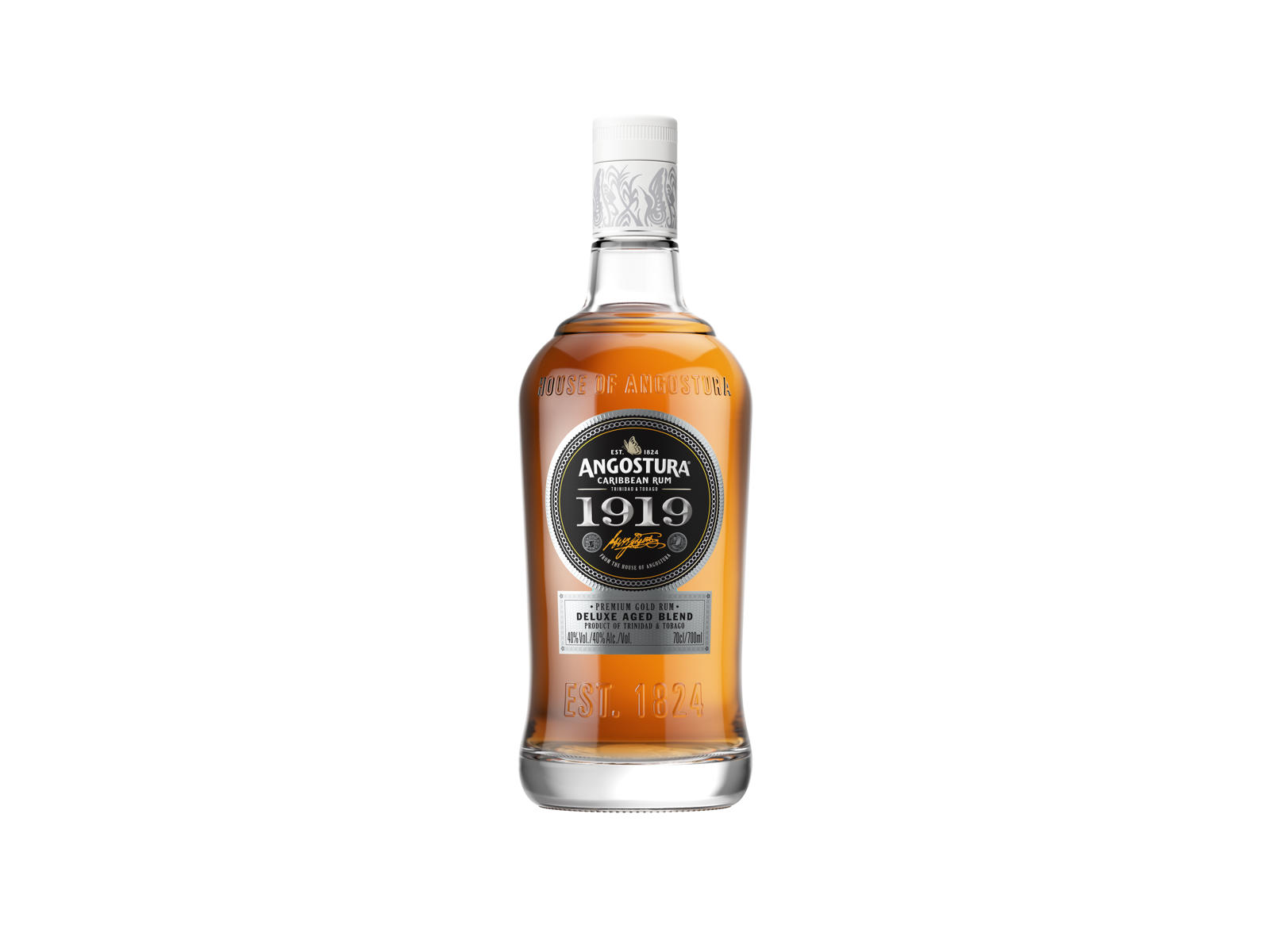 Angostura 1919 er en fantastisk blend af rom lagret mellem 5 til 14 år - en ægte Trinidadisk rom! Velsmagende, en fyldig krop med noter af ristede nødder, vanilje, krydderier og tropiske nuancer. Har er lang og blød "finish", ideel til desserter og chokolade.