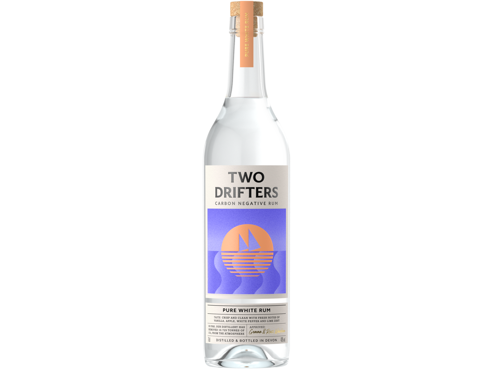 Grundlagt af ægteparret Russ og Gemma Wakeham fra Denvon har Two Drifters rom været en central del af deres livshistorie. Russ’s baggrund inden for CO2-opfang og lagring har inspireret dem til at fokusere på bæredygtighed. I løbet af blot 3,5 år har de gjort sig bemærket i branchen med kvalitetsrom og en verificeret CO2-negativt aftryk. British Airways har allerede taget deres rom med ombord på alle deres flyvninger.