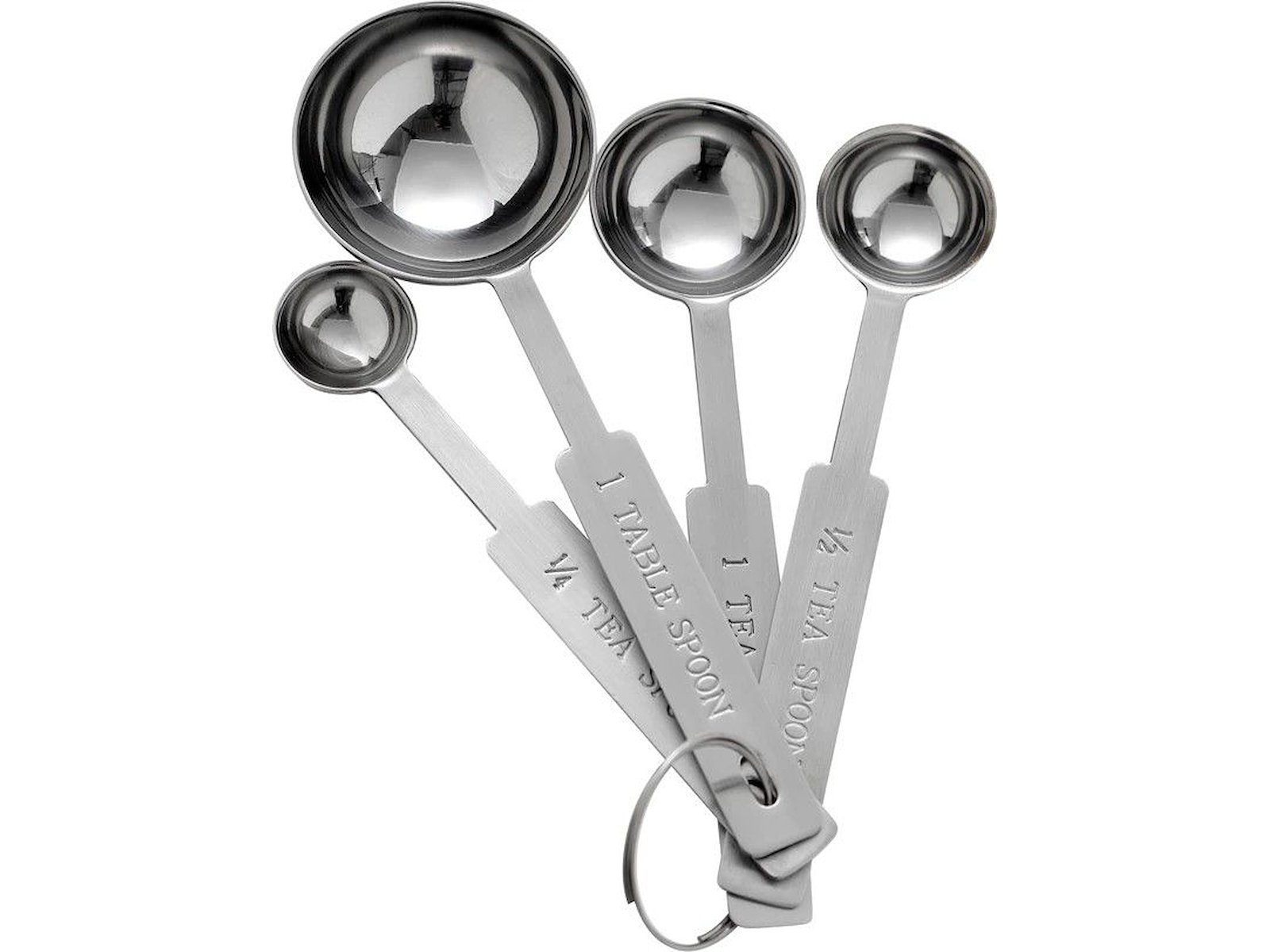 Måleskeer 4 stk rustfri stål, 1sp, 1ts, ½ts, 1/4ts, 1sæt