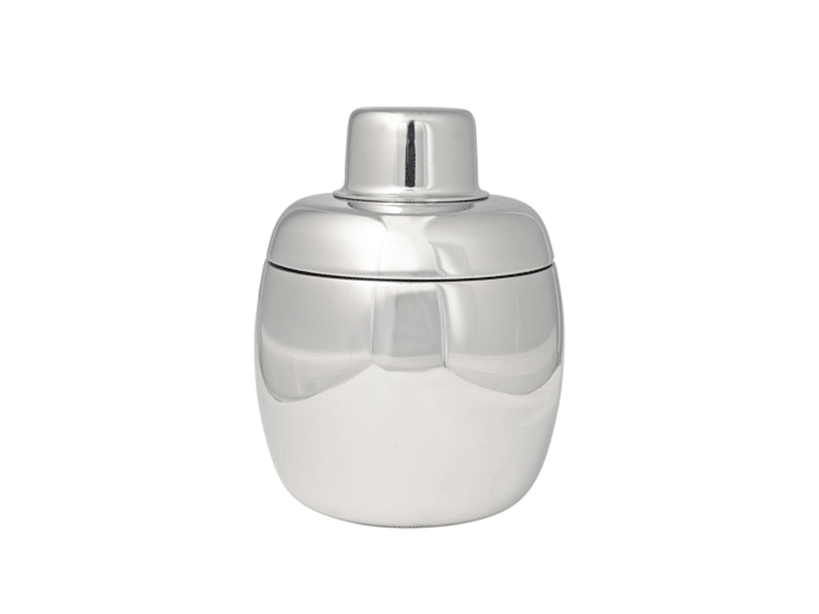 Kay Bojesens shaker adskiller sig fra de fleste andre med sin særlige silhuet. Den er skabt i Kay Bojesens smukke, bløde formsprog, der gør den elegant. Shakeren har en utrolig rummelighed på op til 90 cl, og den består af tre dele og er udstyret med en indbygget si. Den er lavet i poleret stål. Shakeren er designet i samarbejde med flere promonente danske bartendere - her i blandt Jesper Skov og Søren Krog. Her er der tale om en shaker til den eksklusive hjemmebar.
