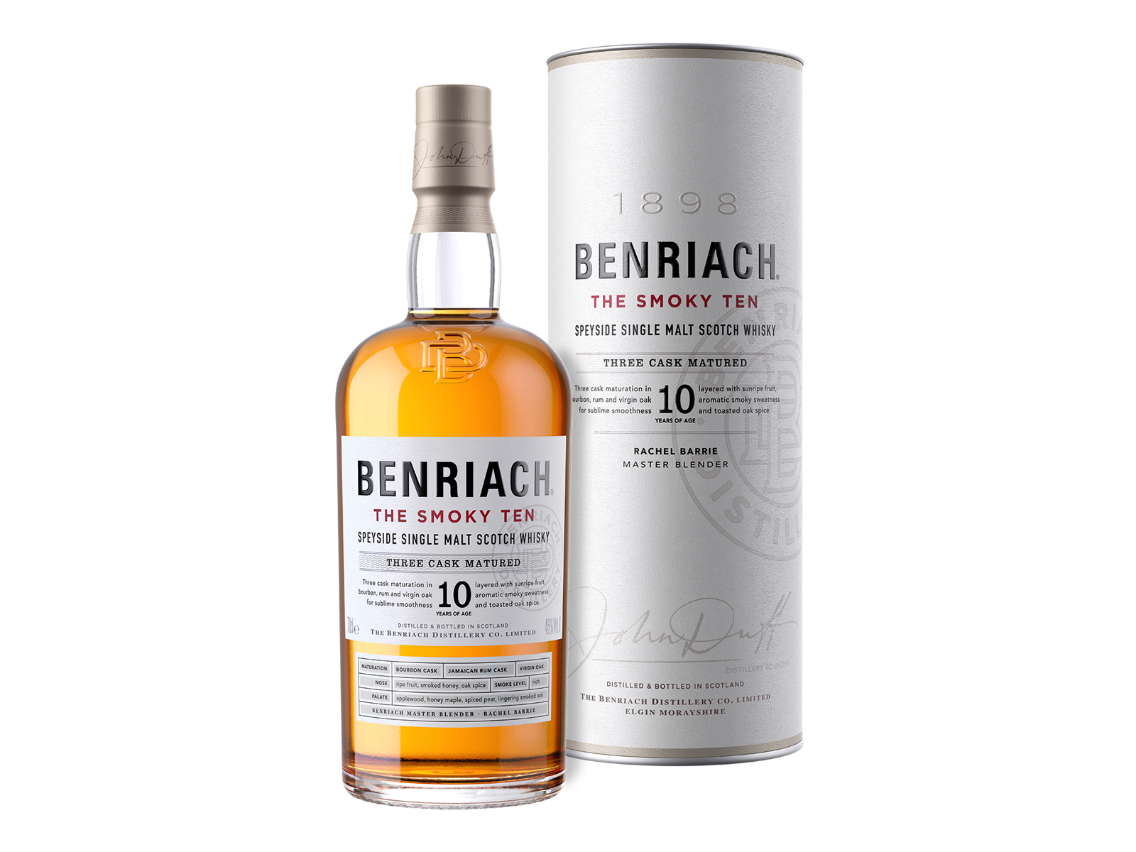 The Smoky Ten! er en ideel introduktion til dem, som ønsker at prøve en anden stil af røget maltwhisky. Whiskyen er modnet på henholdsvis Bourbonfade, Romfade og Virgin Oak, som er med til at skabe en enestående whisky.